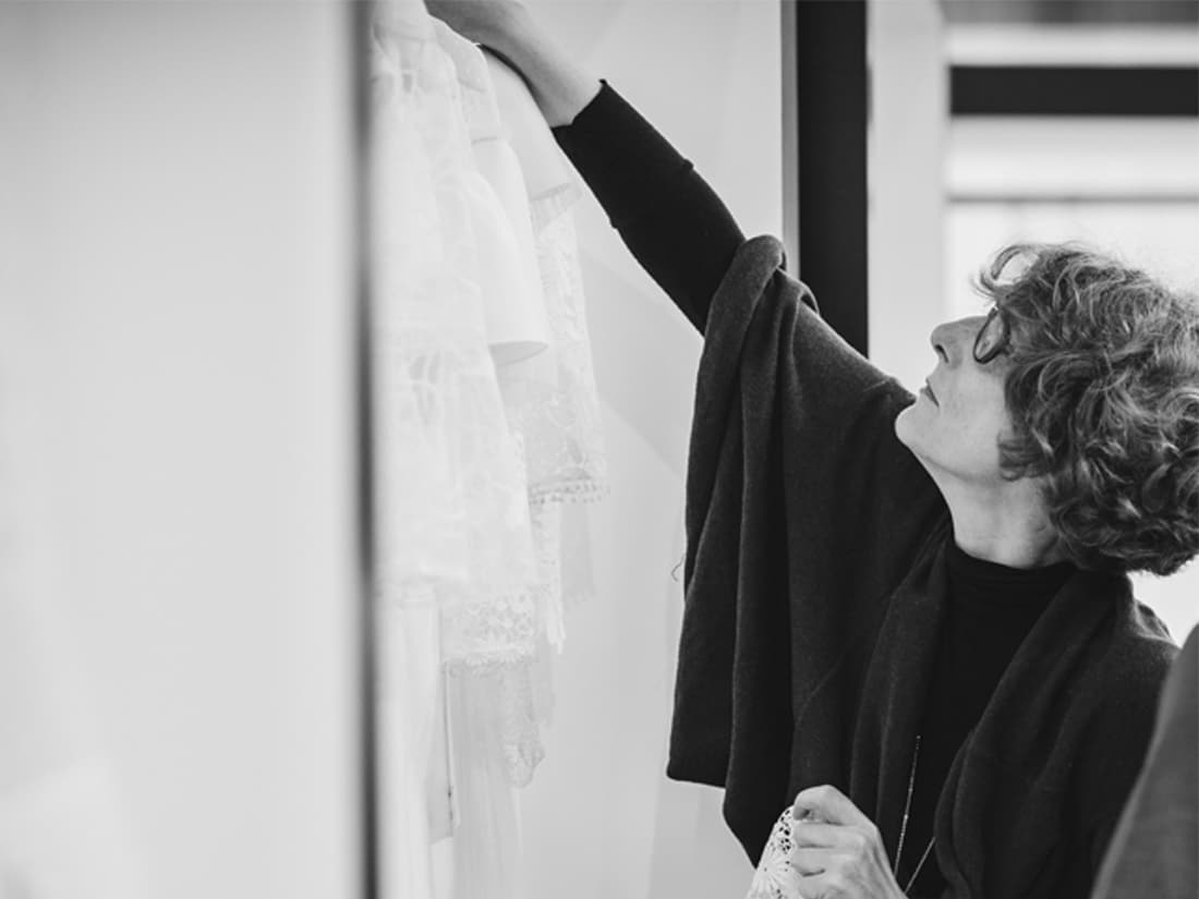 Ruth: Das ist eine Kunst originell zu bleiben und eine Kollektion zu entwerfen, die noch kommerziell ist. Wir erfinden uns jedes Jahr neu, obwohl die Entwicklung weniger ausgeprägt ist als beim Prêt-à-porter. Das größte Augenmerk sind die Stoffe und Borten. Wir sind ständig auf der Suche nach Neuheiten, die in der Brautmode nicht so leicht zu finden sind. Und wir achten auch auf den Ursprung der Materialien; wir wollen so umweltfreundlich wie möglich produzieren.